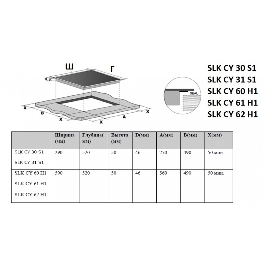Схема встраивания для Варочной панели Schaub Lorenz SLK CY 60 H1